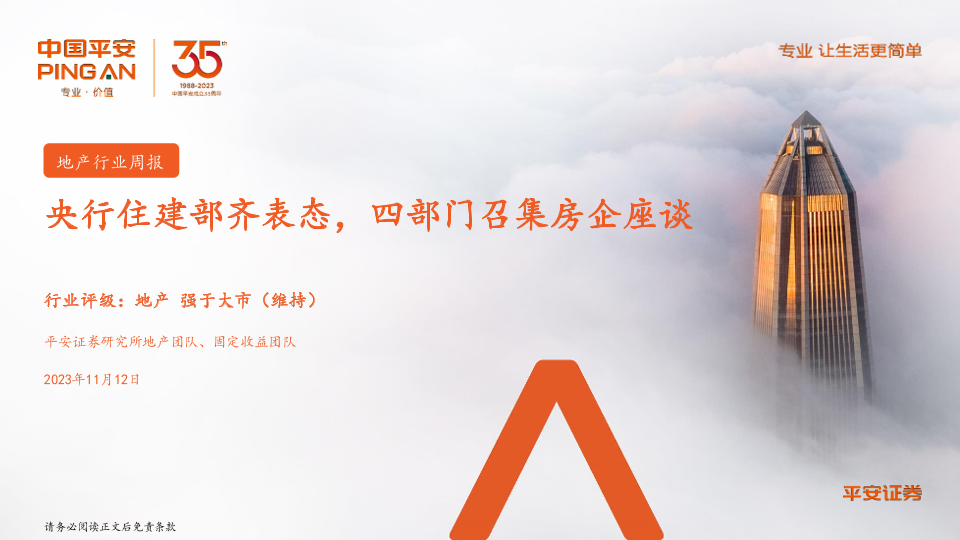 【平安证券】【20231112】地产行业周报:央行住建部齐表态,四部门召集房企座谈-19页