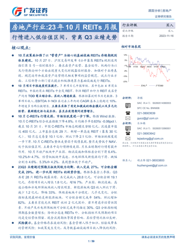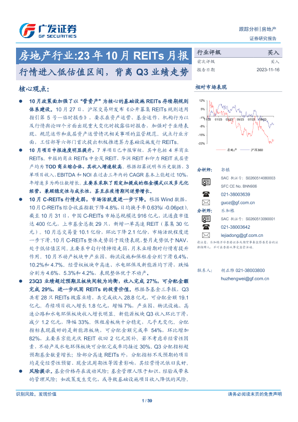 【广发证券】【20231116】23年10月REITs月报:行情进入低估值区间,背离Q3业绩走势-39页