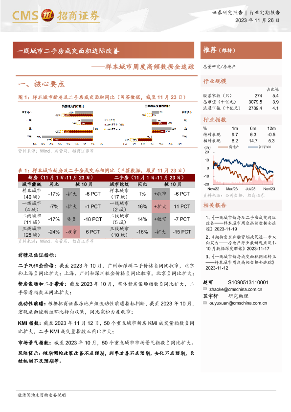 【海通证券】【20231126】房地产:样本城市周度高频数据全追踪-一线城市二手房成交面积边际改善-12页