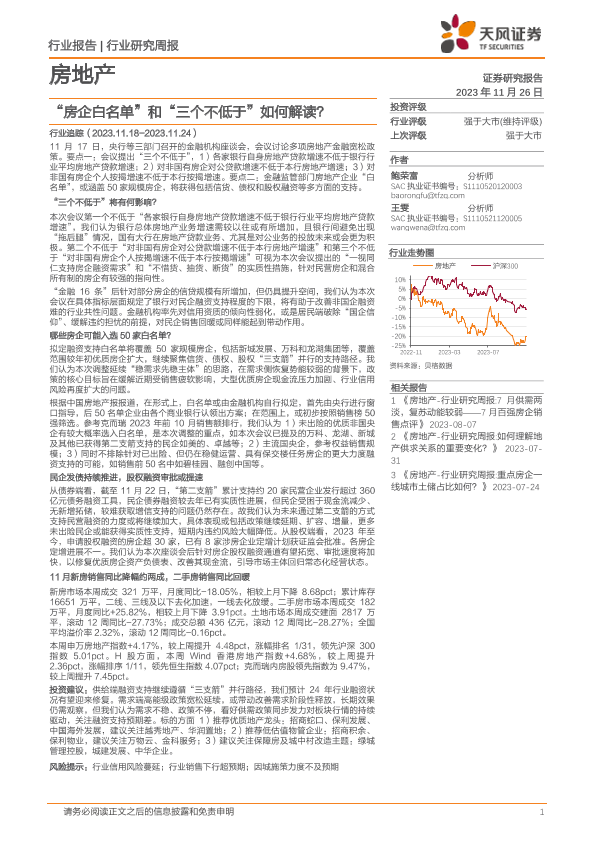 【天风证券】【20231126】“房企白名单”和“三个不低于”如何解读?-20页