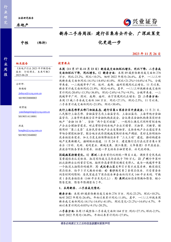【兴业证券】【20231126】新房二手房周报:建行召集房企开会,广深政策变化更进一步-26页