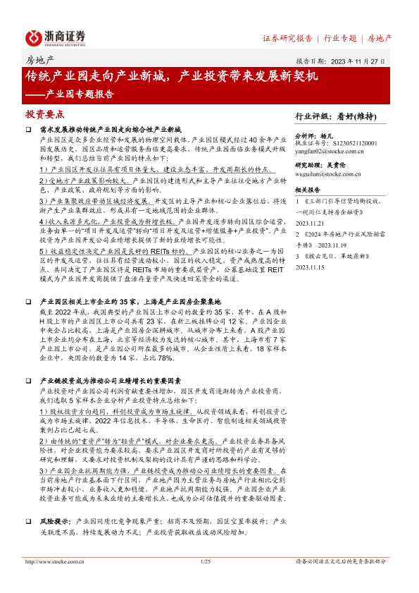 【浙商证券】【20231127】传统产业园走向产业新城,产业投资带来发展新契机-25页