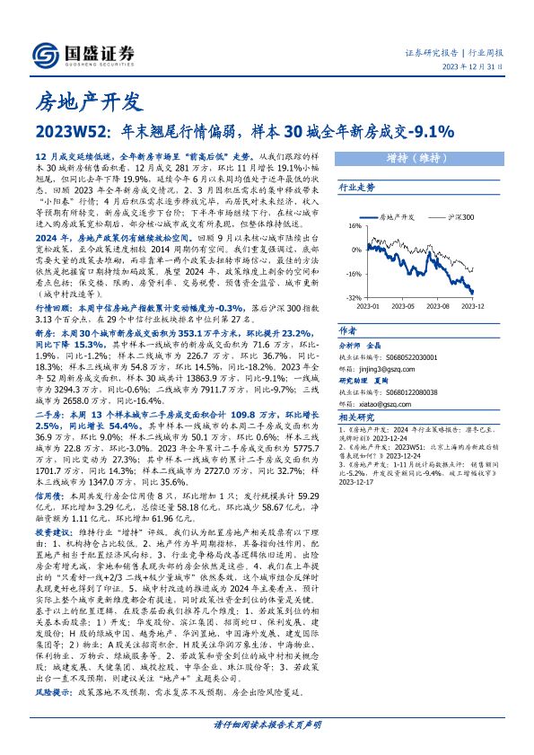 【国盛证券】【20231231】2023W52:年末翘尾行情偏弱,样本30城全年新房成交-9.1%-15页