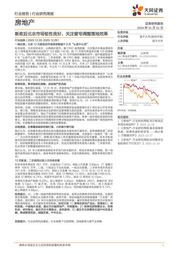 【天风证券】【20240101】新政后北京市场韧性良好,关注普宅调整落地效果-16页