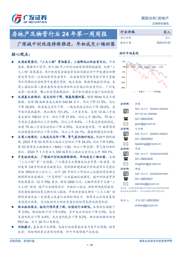 【广发证券】【20240107】房地产及物管行业24年第一周周报:广深城中村改造持续推进,年初成交小幅回落-30页