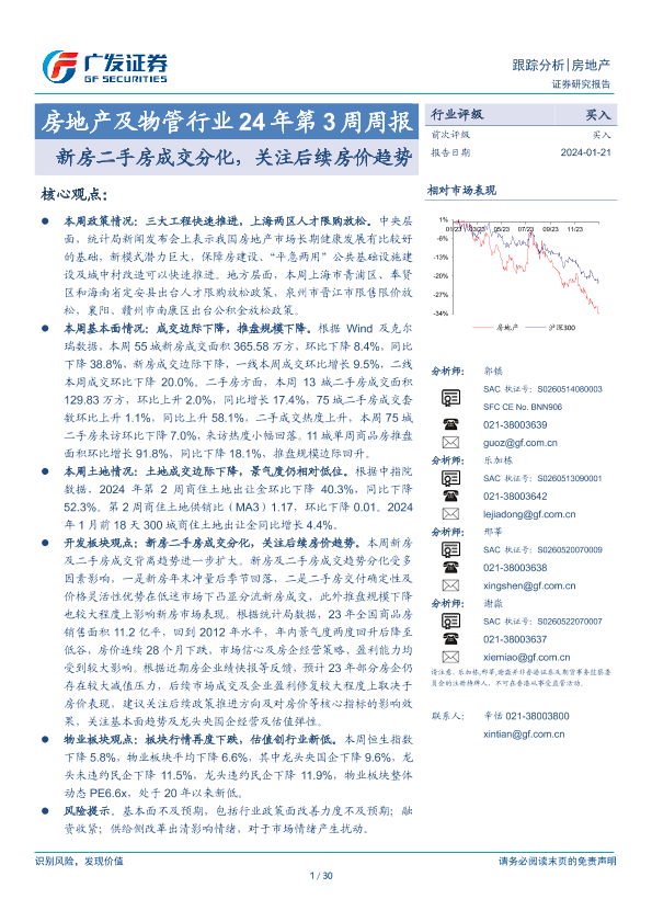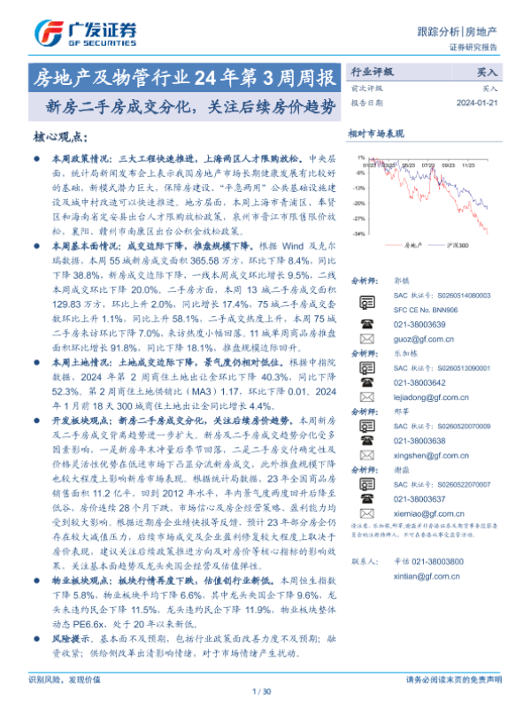 【广发证券】【20240121】房地产及物管行业24年第3周周报:新房二手房成交分化,关注后续房价趋势-30页
