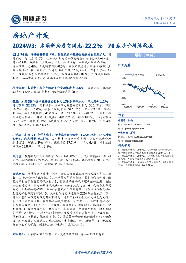 【国盛证券】【20240121】2024W3:本周新房成交同比-22.2%,70城房价持续承压-15页