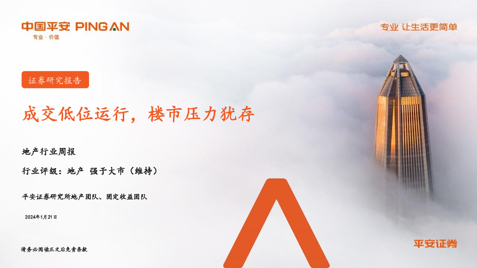 【平安证券】【20240121】地产行业周报:成交低位运行,楼市压力犹存-19页