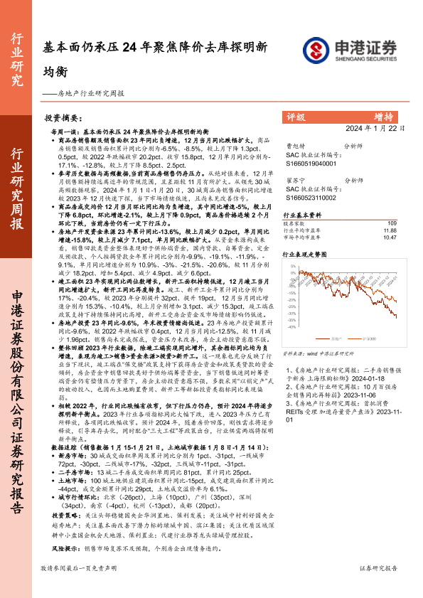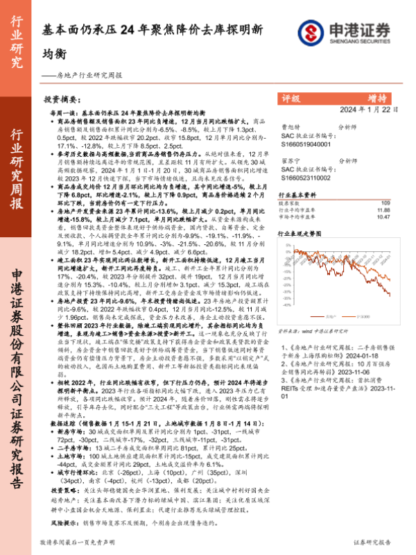 【申港证券】【20240122】基本面仍承压,24年聚焦降价去库探明新均衡-12页