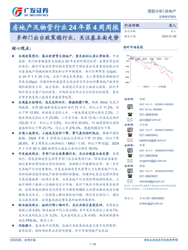 【广发证券】【20240128】房地产及物管行业24年第4周周报:多部门出台政策稳行业,关注基本面走势-30页