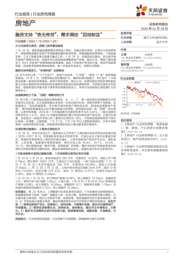 【天风证券】【20240128】房地产行业研究周报:融资支持“责无旁贷”,需求调控“因地制宜”-18页
