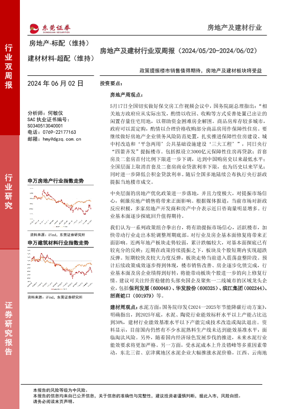 【东莞证券】【20240602】房地产及建材行业双周报:政策提振楼市销售值得期待,房地产及建材板块将受益-15页