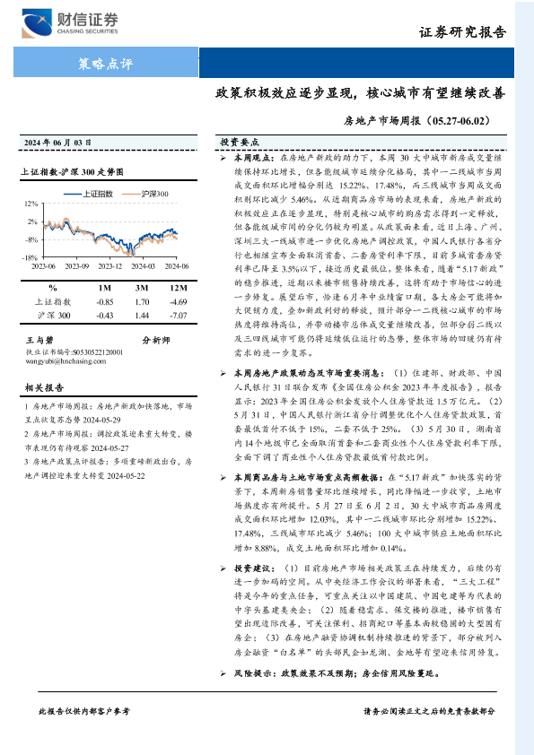 【财信证券】【20240603】房地产市场周报:政策积极效应逐步显现,核心城市有望继续改善-20页