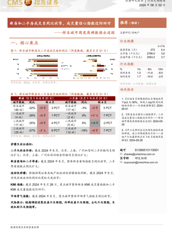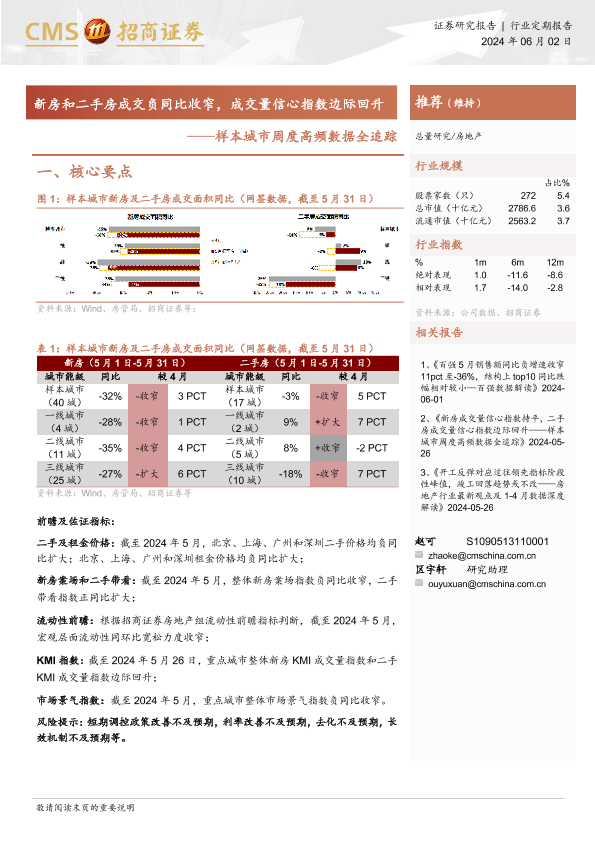 【海通证券】【20240602】房地产行业样本城市周度高频数据全追踪:新房和二手房成交负同比收窄,成交量信心指数边际回升-12页