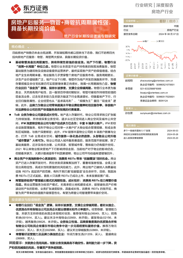 【东方证券】【20240607】地产行业长期投资逻辑专题研究:房地产后服务—物管+商管抗周期属性强,具备长期投资价值-24页