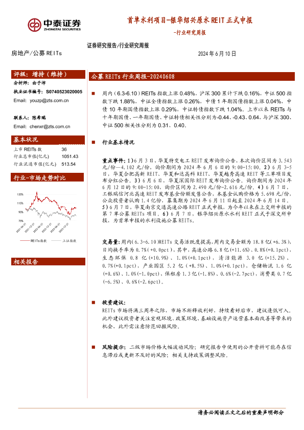 【中泰证券】【20240610】首单水利项目-银华绍兴原水REIT正式申报-17页