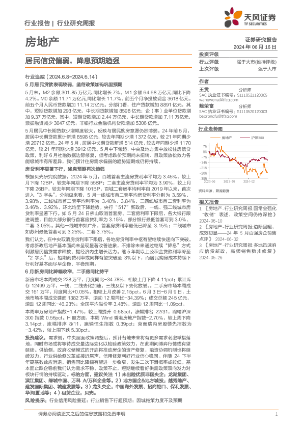 【天风证券】【20240616】居民信贷偏弱,降息预期趋强-15页