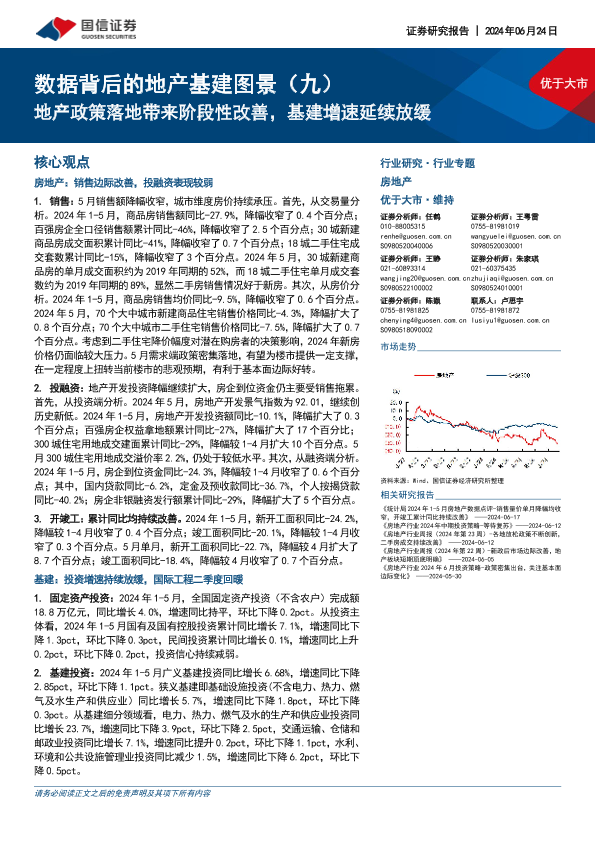 【国信证券】【20240624】数据背后的地产基建图景(九):地产政策落地带来阶段性改善,基建增速延续放缓-27页