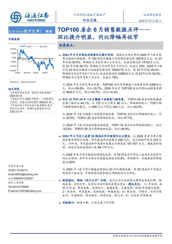 【海通证券】【20240702】TOP100房企6月销售数据点评-10页