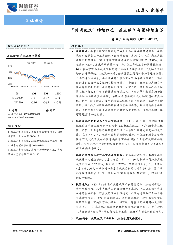 【财信证券】【20240708】“因城施策”持续推进,热点城市有望持续复苏-20页