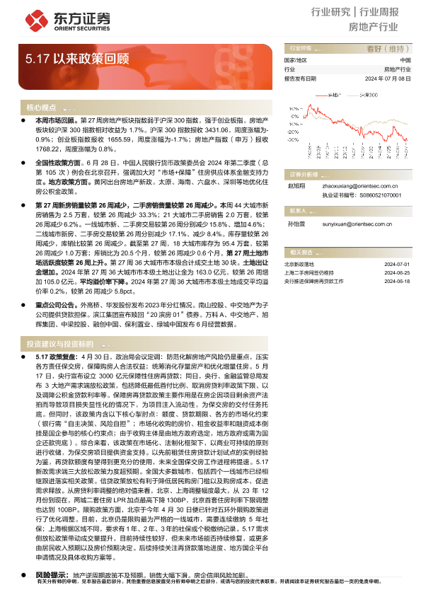 【东方证券】【20240708】房地产行业周报:5.17以来政策回顾-14页