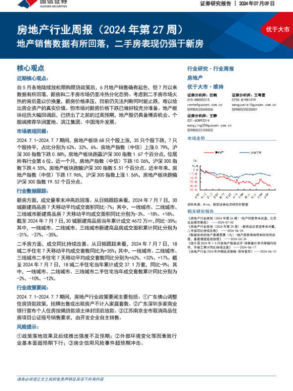 【国信证券】【20240709】房地产行业周报:地产销售数据有所回落,二手房表现仍强于新房-14页