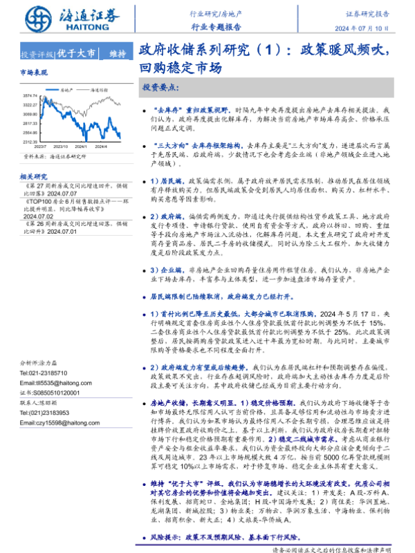 【海通证券】【20240710】政府收储系列研究(1):政策暖风频吹,回购稳定市场-20页