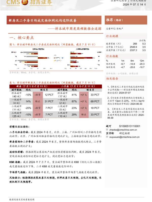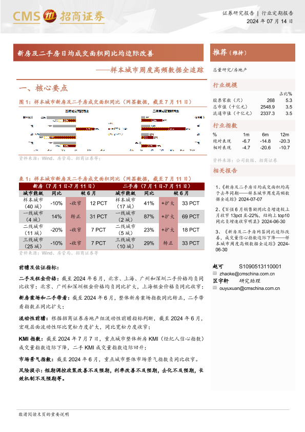 【海通证券】【20240714】样本城市周度高频数据全追踪:新房及二手房日均成交面积同比均边际改善-12页