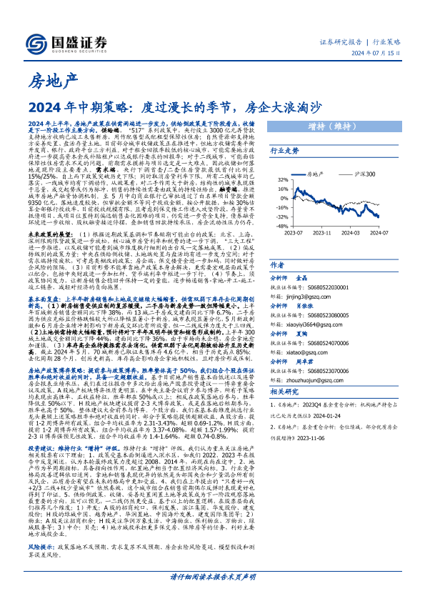 【国盛证券】【20240715】房地产2024年中期策略:度过漫长的季节,房企大浪淘沙-40页