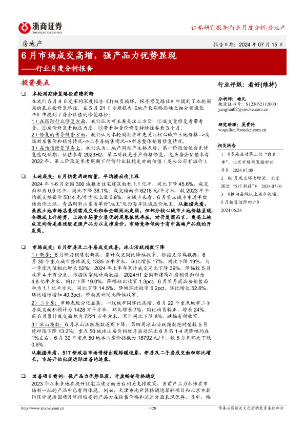 【浙商证券】【20240715】6月市场成交高增,强产品力优势显现-20页