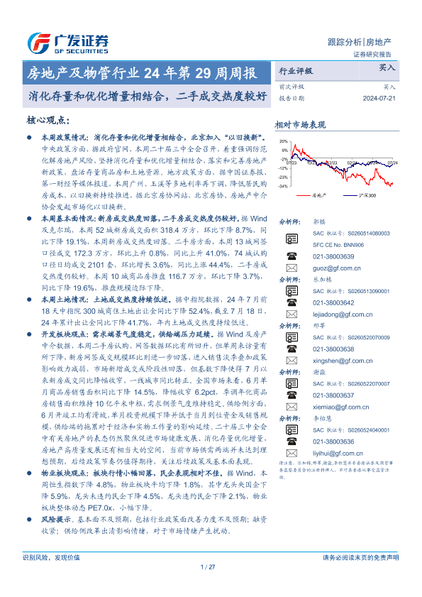 【广发证券】【20240721】房地产及物管行业24年第29周周报:消化存量和优化增量相结合,二手成交热度较好-27页