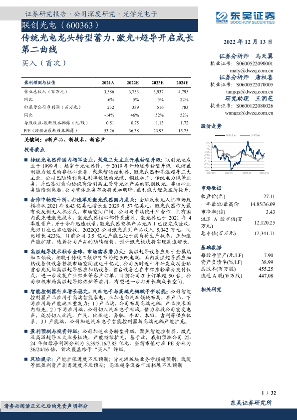 【东吴证券】【20221213】传统光电龙头转型蓄力,激光+超导开启成长第二曲线-32页