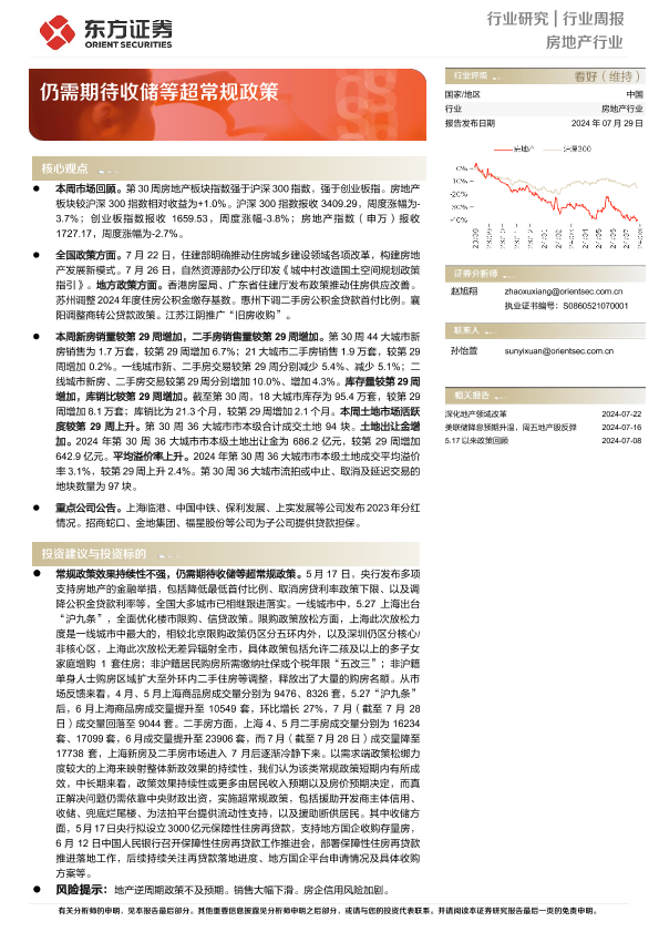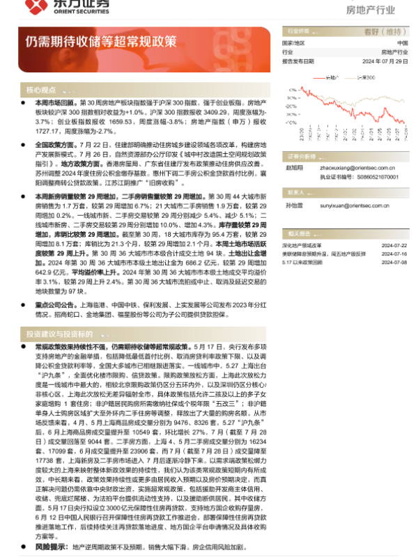 【东方证券】【20240729】房地产行业周报:仍需期待收储等超常规政策-14页