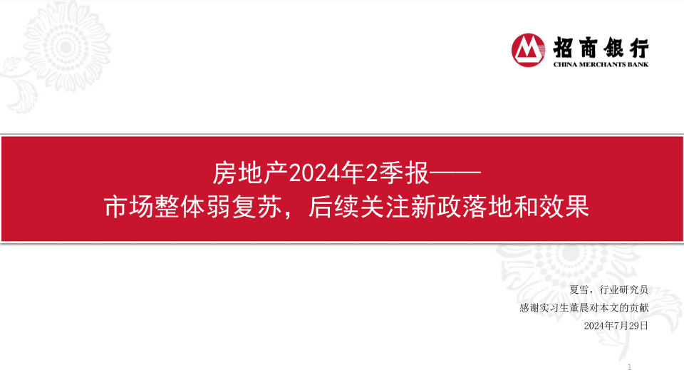 【招商银行】【20240729】房地产2024年2季报:市场整体弱复苏,后续关注新政落地和效果-22页