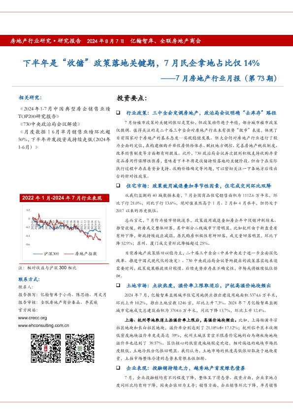 【亿翰智库】【20240807】7月房地产行业月报:下半年是“收储”政策落地关键期,7月民企拿地占比仅14%-21页