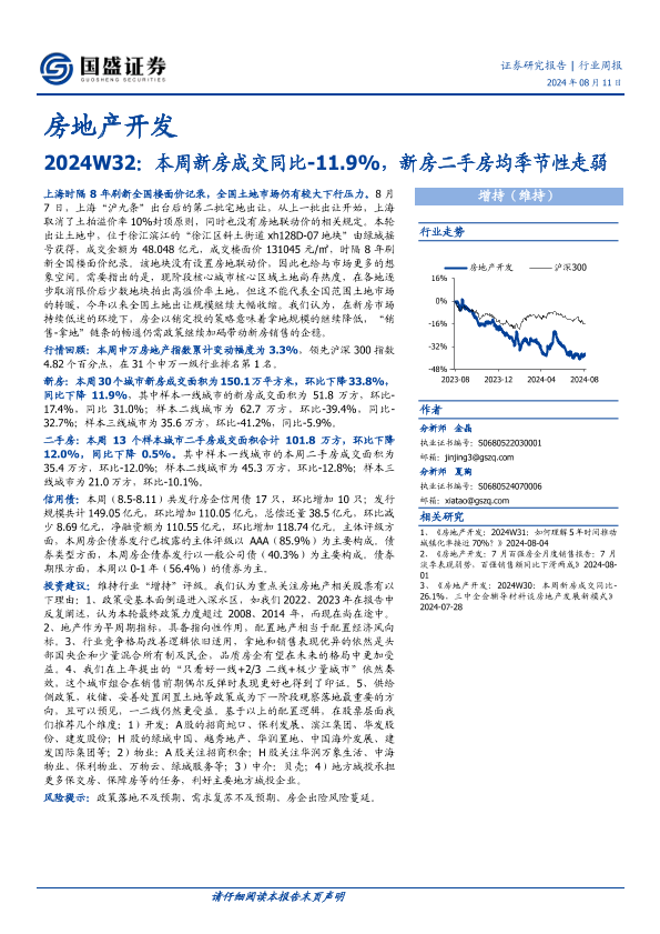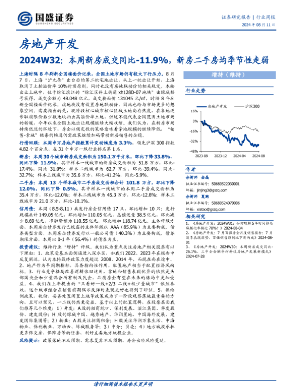 【国盛证券】【20240811】2024W32:本周新房成交同比-11.9%,新房二手房均季节性走弱-16页