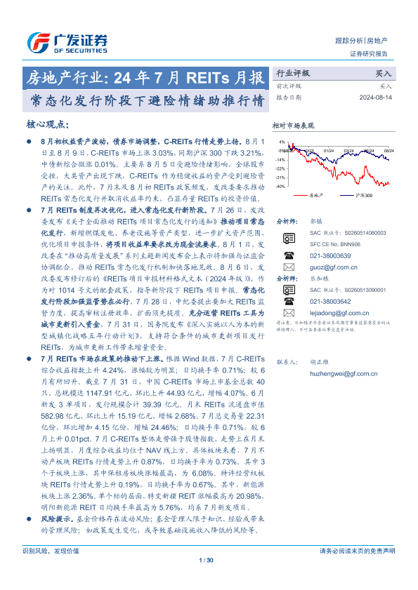【广发证券】【20240814】24年7月REITs月报:常态化发行阶段下避险情绪助推行情-30页