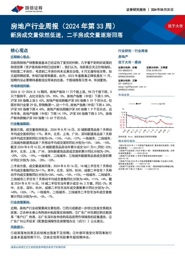 【国信证券】【20240820】房地产行业周报:新房成交量依然低迷,二手房成交量逐渐回落-15页