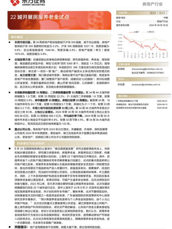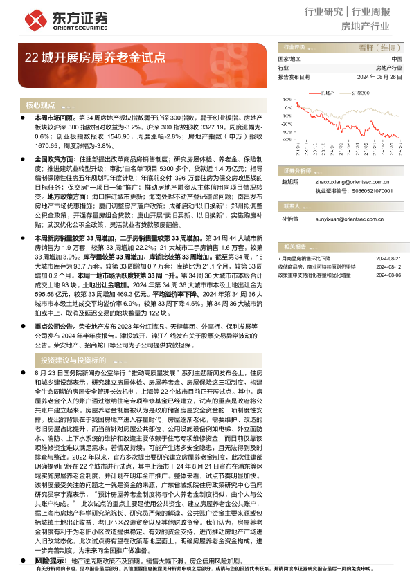 【东方证券】【20240826】房地产行业周报:22城开展房屋养老金试点-15页