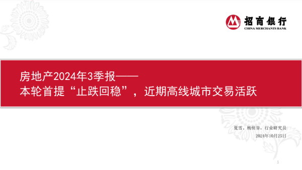 【招商银行】【20241025】房地产2024年3季报:本轮首提“止跌回稳”,近期高线城市交易活跃-22页