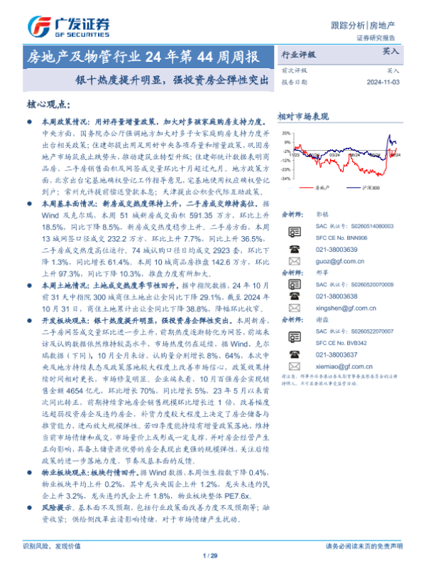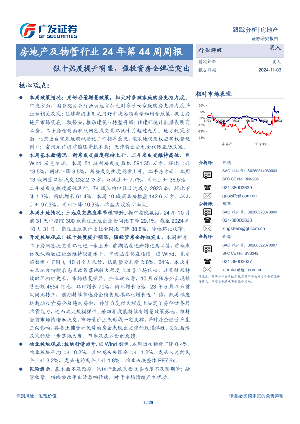 【广发证券】【20241103】房地产及物管行业24年第44周周报:银十热度提升明显,强投资房企弹性突出-29页
