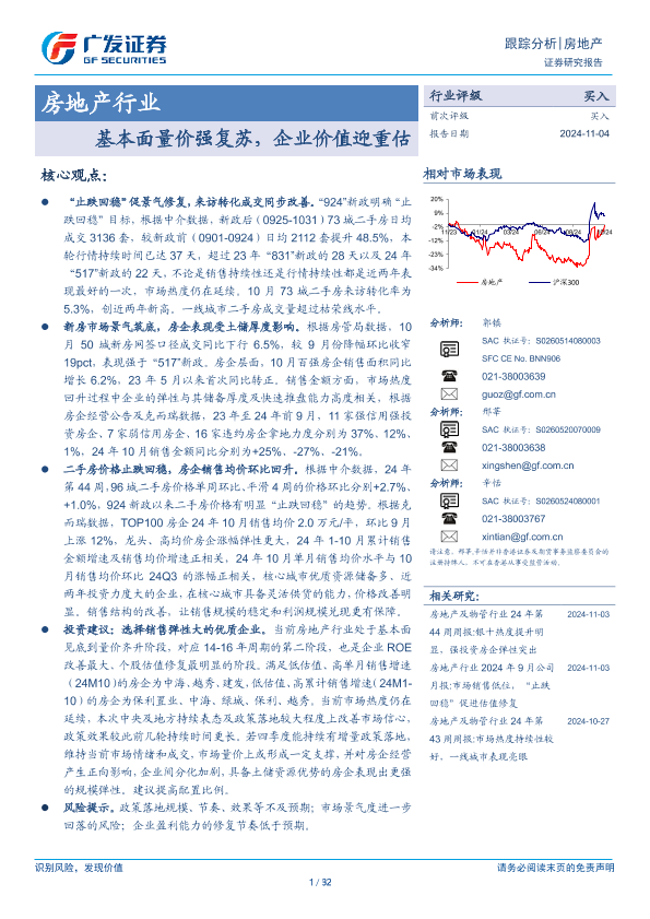 【广发证券】【20241104】房地产行业跟踪分析:基本面量价强复苏,企业价值迎重估-32页