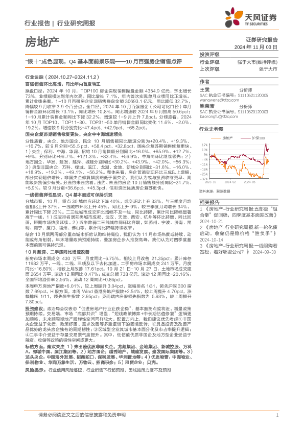 【天风证券】【20241103】“银十”成色显现,Q4基本面前景乐观——10月百强房企销售点评-16页