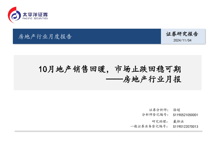 【太平洋证券】【20241104】10月地产销售回暖,市场止跌回稳可期-17页