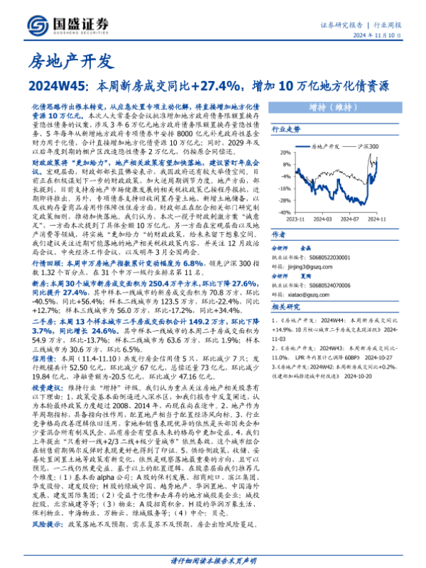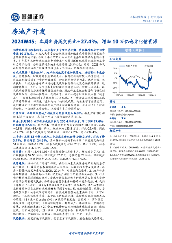 【国盛证券】【20241110】房地产开发2024W45:本周新房成交同比+27.4%,增加10万亿地方化债资源-14页