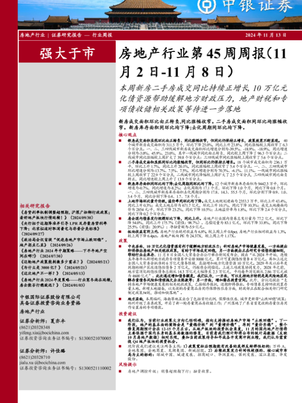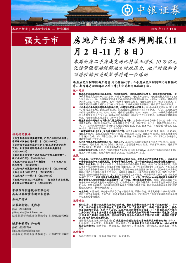 【中银证券】【20241113】房地产行业第45周周报:本周新房二手房成交同比持续正增长,10万亿元化债资源帮助缓解地方财政压力-25页