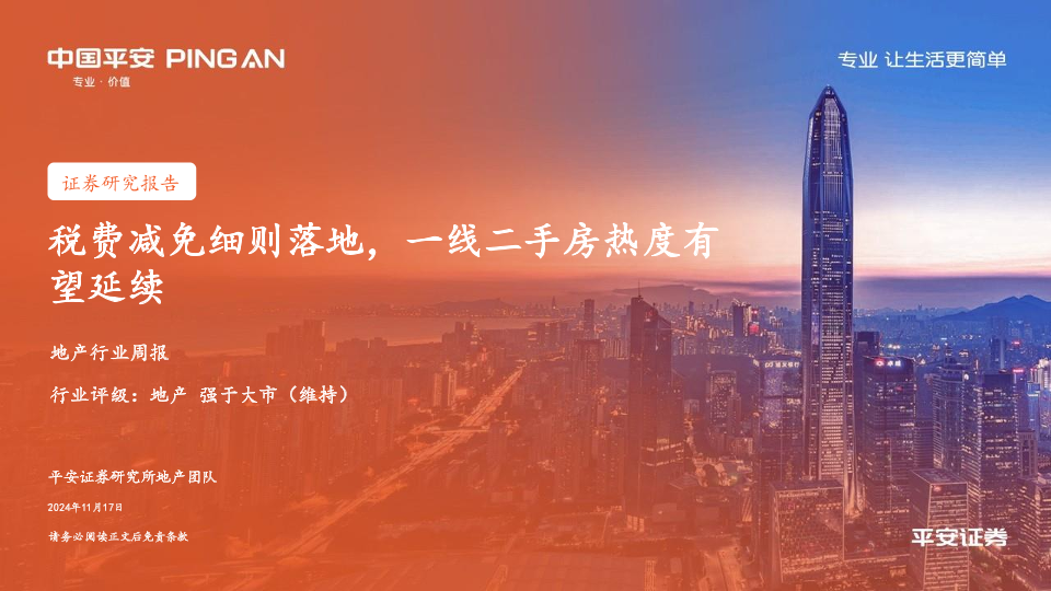 【平安证券】【20241117】地产行业周报:税费减免细则落地,一线二手房热度有望延续-15页