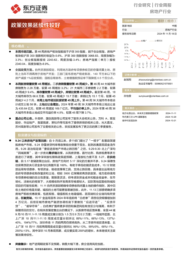 【东方证券】【20241118】房地产行业周报:政策效果延续性较好-14页