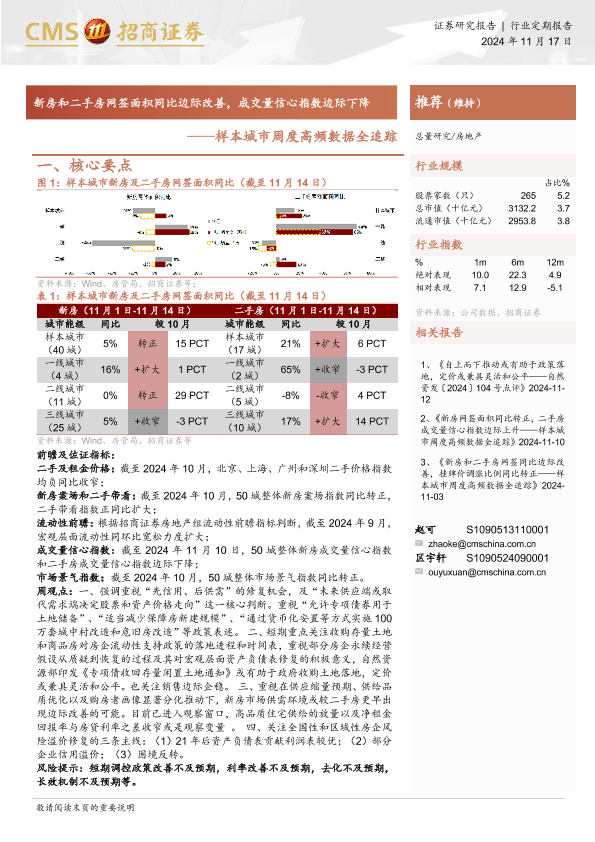 【海通证券】【20241117】样本城市周度高频数据全追踪-新房和二手房网签面积同比边际改善,成交量信心指数边际下降-12页
