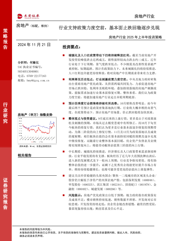 【东莞证券】【20241121】房地产行业2025年上半年投资策略-13页